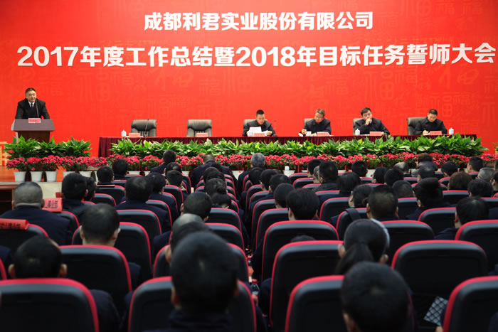 2018年2月9日,成都利君實業股份有限公司在成都市龍泉驛區利君科技公司員工禮堂組織召開了2017年度工作總結暨2018年目標任務誓師大會。
