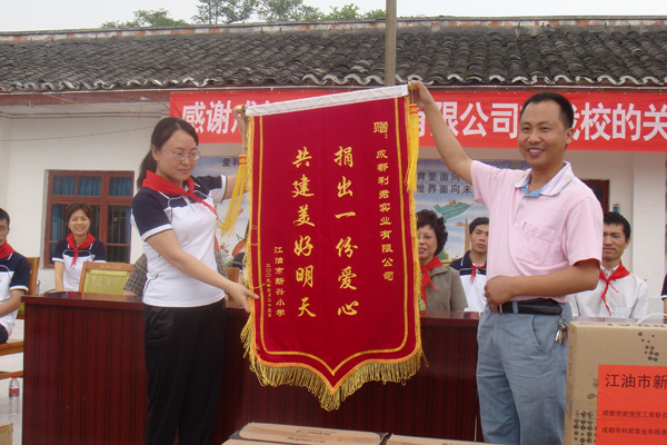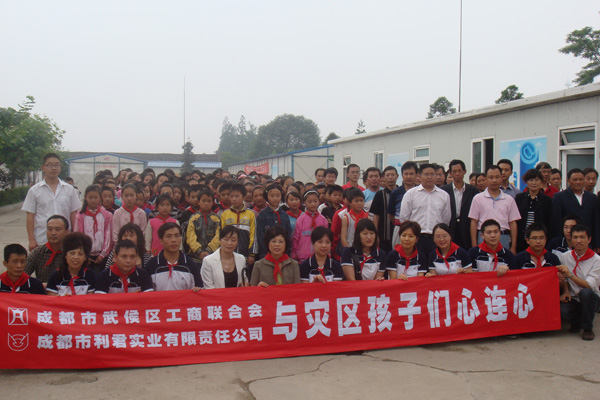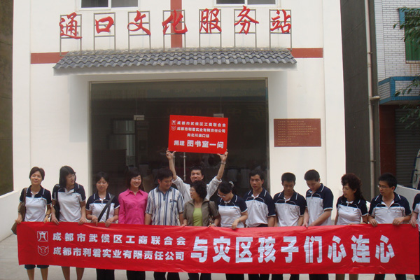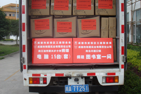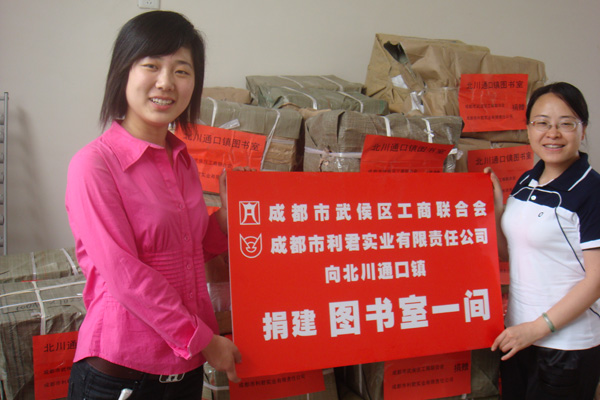 “送一份禮物,寄一份關愛”,在紀念“5.12”汶川大地震一周年之際,成都市利君實業有限責任公司向地震重災區北川縣通口鎮捐建圖書室一間,捐助圖書5100冊,桌椅、電腦等物資。向江油市新興鄉小學,捐贈電腦15臺(套)。